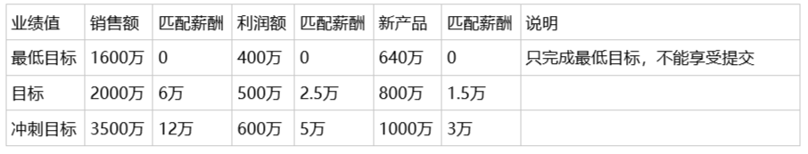 也就是:業(yè)績再差,也有10萬(固定薪酬),完成目標(biāo)100%,可得薪酬20萬;超額完成,有機(jī)會得到40萬(10萬底薪+10萬提成*3=40萬),這就是他的薪酬區(qū)間