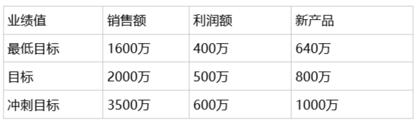 比如銷售額、回款、利潤、新產(chǎn)品占比、網(wǎng)絡(luò)占比等等,并賦予不同的考核權(quán)重